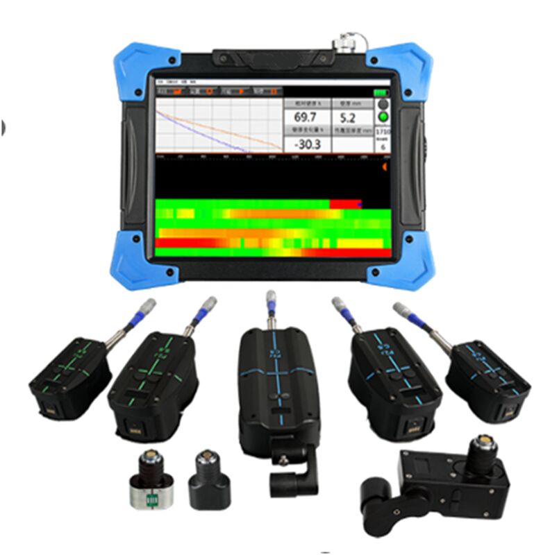 De apparatuur kan worden gebruikt voor de in gebruik zijnde inspectie van de wanddikte van de metalen buizen buiten de bekledingslaag, in plaats van de traditionele sinusvormige stroomprikkels voor pulsstroom,pulsmagnetisch veld buiten de geleider, de geleider in de pulserende draadloze sensor, door het dempingsproces van pulserende draadloze elektromagnetische veld te meten, om de mate van corrosie van de buiswanddikte te beoordelen.Vergeleken met de traditionele wanddikte-detectiemethode:zonder poets, zonder koppeling, kan de detectie-efficiëntie aanzienlijk worden verbeterd.